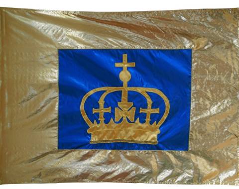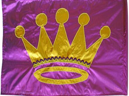 | Fahne Krone auf fliederfarbenem Grund | Fahne Krone auf blauem Grund |
