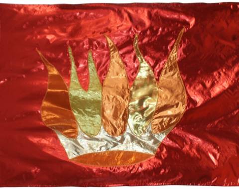| Fahne Flammenkrone | Fahne Krone aus Schriftzug JESHUA |