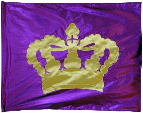 | Fahne einfache Krone auf blauem Grund | Fahne einfache Krone auf purpurnem Grund |